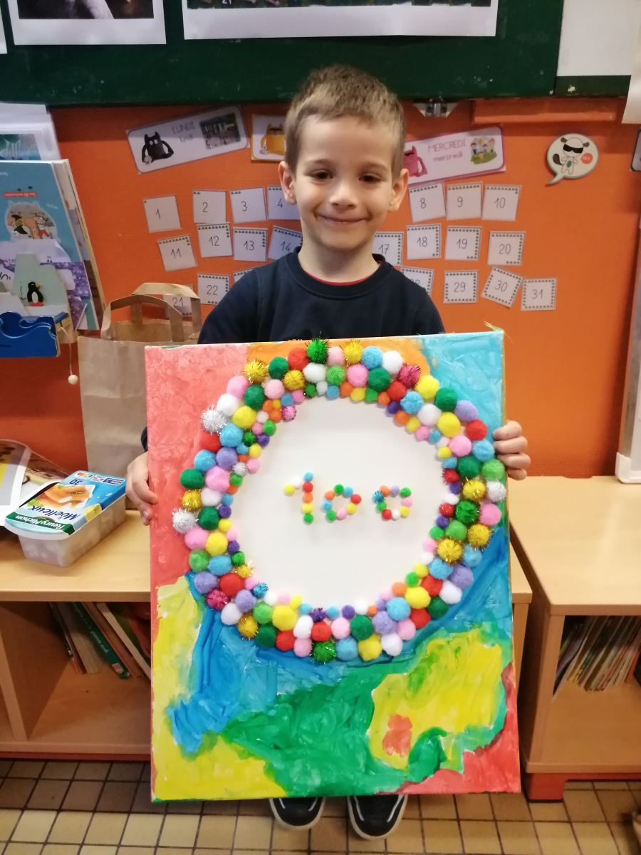 Les élèves ont donc réalisé à la maison l’œuvre des 100 qu’ils ont présentée à leurs camarades.